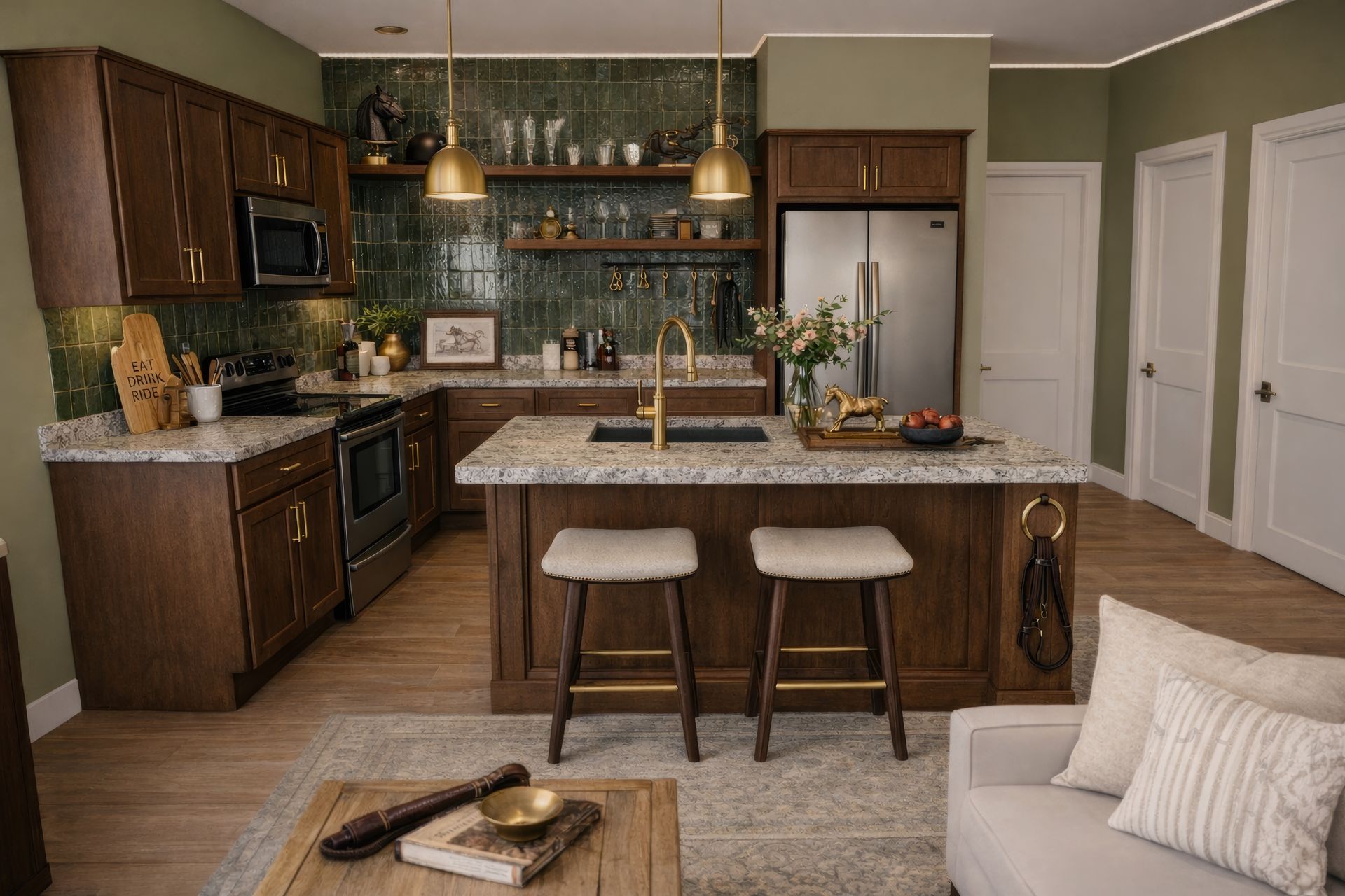 Luxury short-term rentals on the second floor offer guests an exceptional stay in the heart of the community.